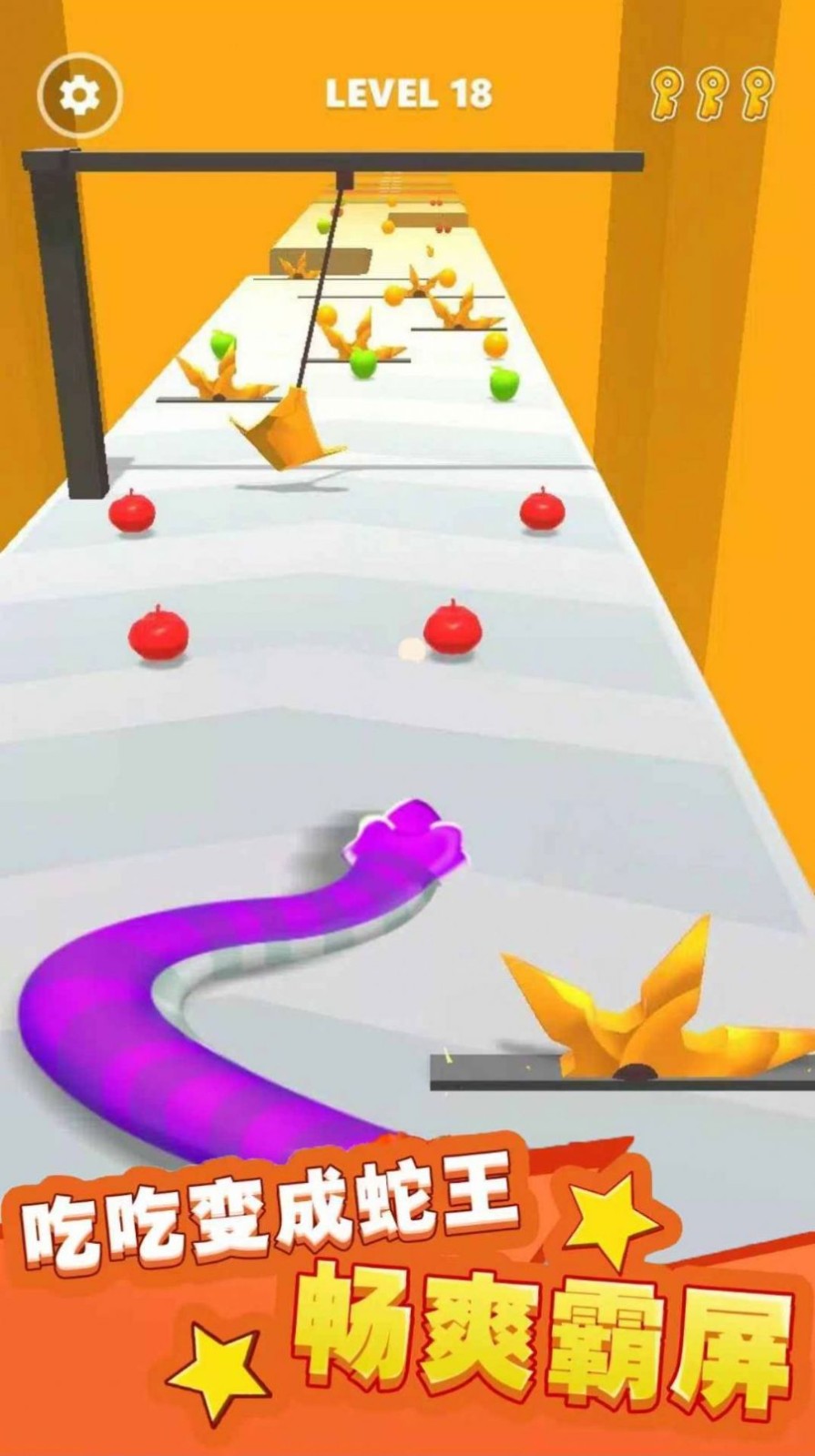 1、让你操控小蛇在地图上移动,还能吃掉食物来增长体长。