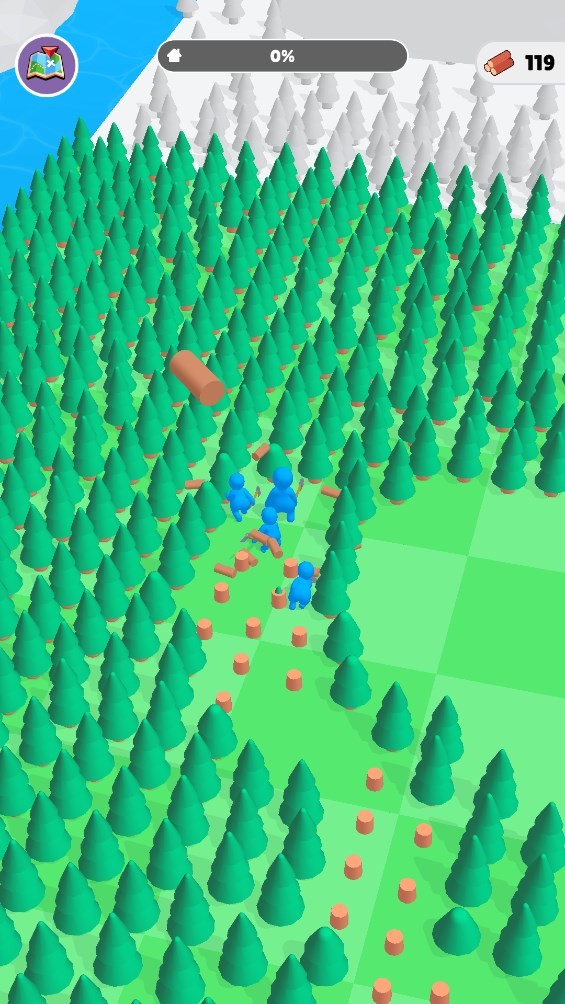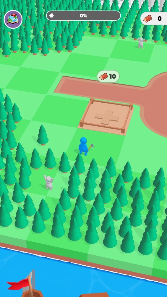 1、在游戏中,快速砍伐树木来建造你想要的城镇,不同的建筑需要不同的资源。