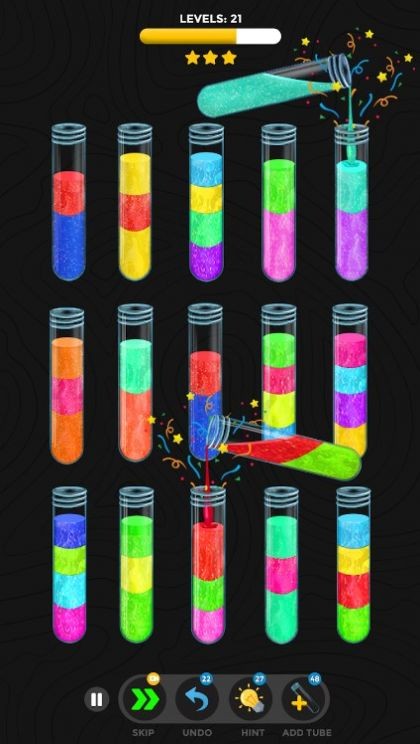 粘液分类是一款非常有趣的休闲脑力游戏,游戏里面玩法内容非常丰富,玩家需要将试管里面的粘液分配到正确容器里面,操作简单易上手,非常考验玩家的思维逻辑能力,还有超多不同的关卡等你挑战,让你可以在这里玩得过瘾,喜欢的小伙伴快来下载吧。