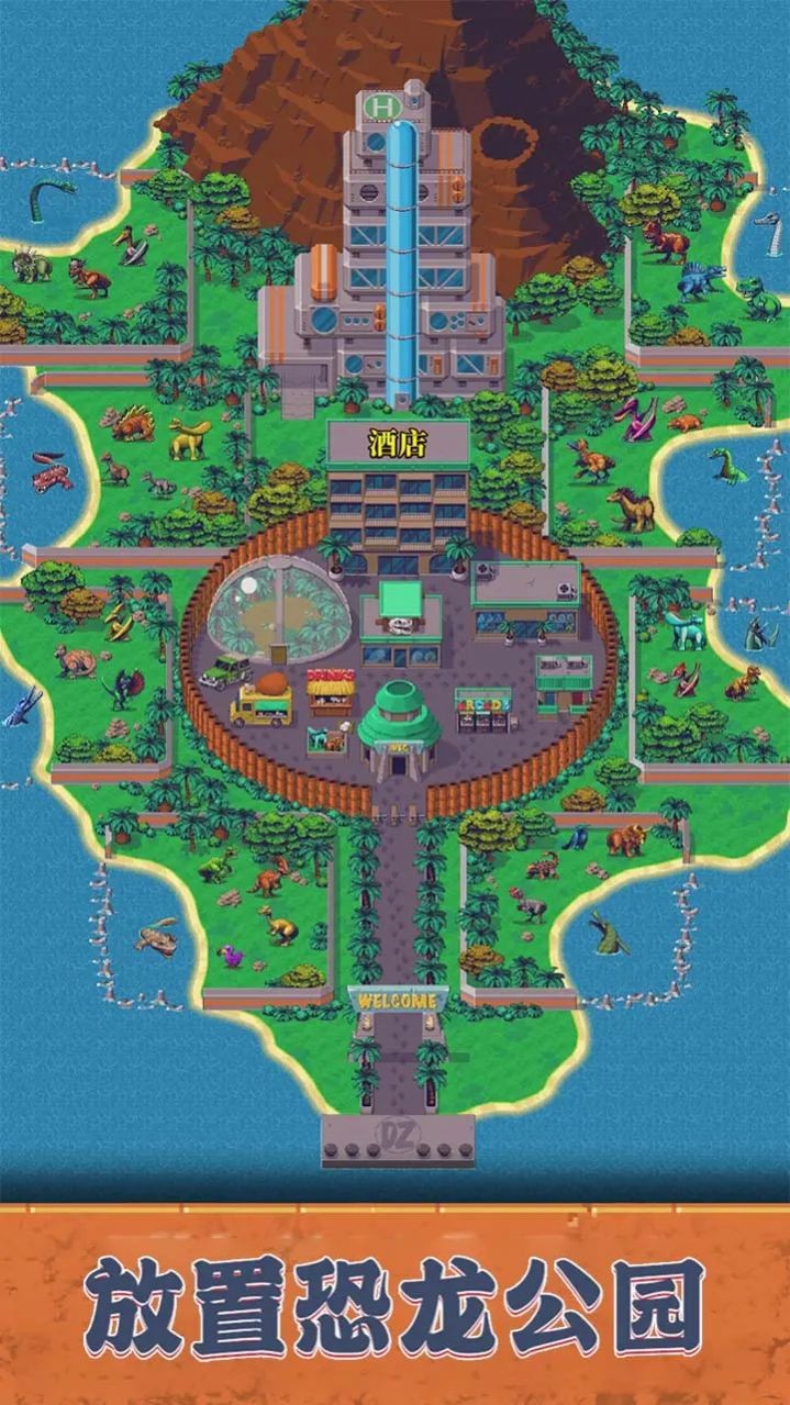 放置恐龙公园是一款简单好玩像素模拟经营手游,玩家在游戏中需要经营一家十分大的恐龙公园,大家在这里可以修建出很多的好看建筑物,吸引超多的顾客前来这里游玩和消费,并且这里面充满了恐龙元素,大家在其中能够见识到许多远古时代的恐龙出现,海陆空三种恐龙应有尽有,带来回到远古的蛮荒时代。