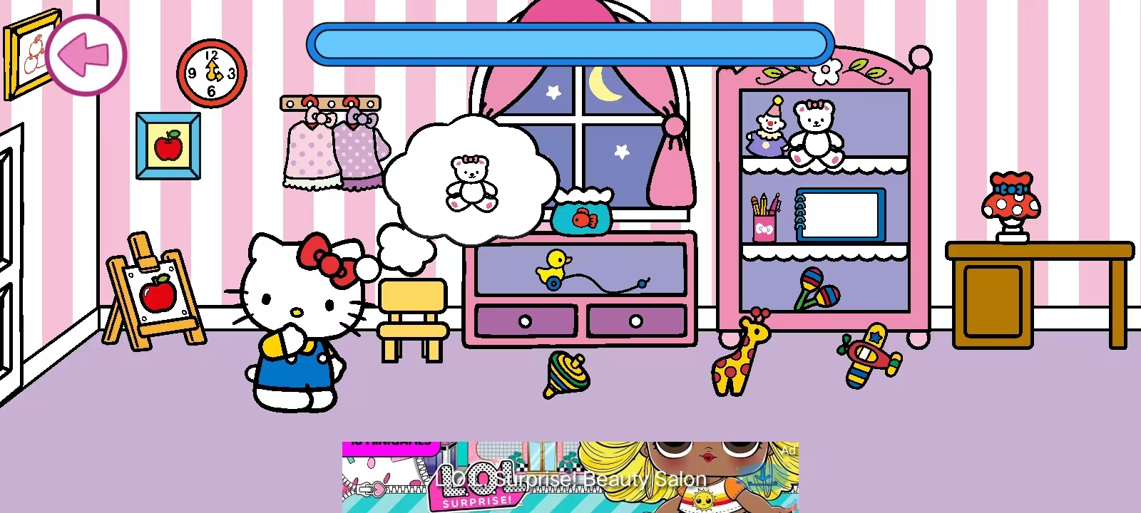 4、选择之后会进入到一个新的场景,随意点击场景内的任何玩具给凯蒂猫玩,使得最上方的【进度条】变满。