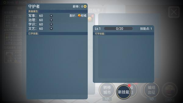 5、提升英雄的各项属性,涵盖军事、治理、学识与文艺等方面;