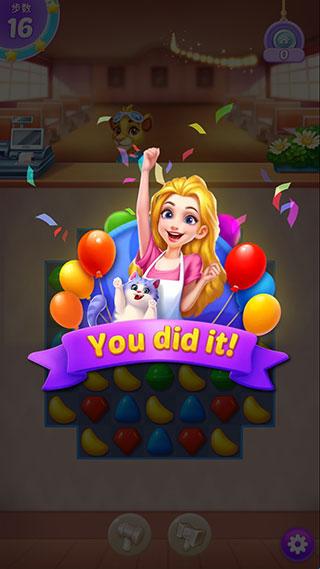 2、完成消除任务的同时,玩家还需要经营自己的糖果店。合理的管理有利于店铺的盈利和发展;