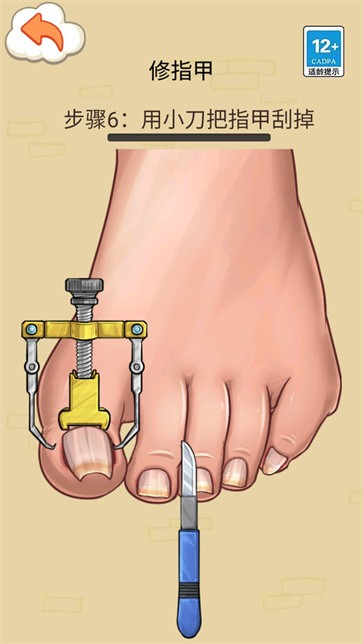 在这个过程中,游戏会教导玩家如何正确使用各种足部护理工具,以及如何涂抹护肤品,从而达到恢复脚部美丽与健康的效果。