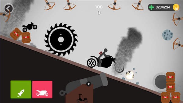 1、扮演一名火柴人骑手,在不同的地形中去完成各种挑战任务;
