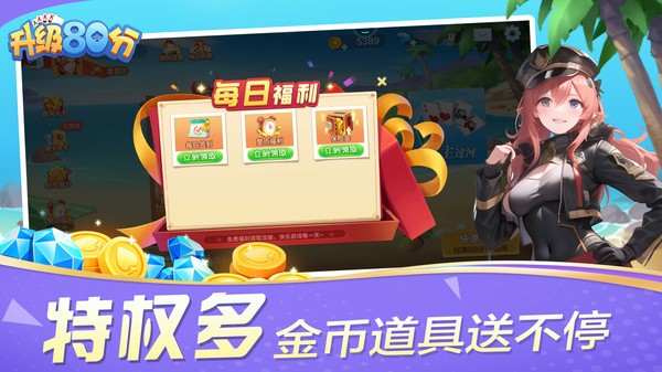 4、【特色奖励丰厚】——打牌送,升金币登录送,破产送,级送,活动送摇身一变成土豪。