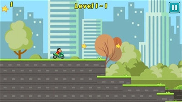 蜡笔小新摩托车是一款好玩的休闲闯关游戏,游戏中采用蜡笔小新游戏角色元素,来这里很多趣味关卡能够体验,关卡中收集星星资源,累积越多分数也就越高,驾驶小摩托车尽情极速,不断的升级跑的更快,整体游戏挑战玩法很有趣,快来试试吧!