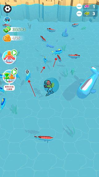 2、在大海中捕鱼,收集许多不同的鱼儿