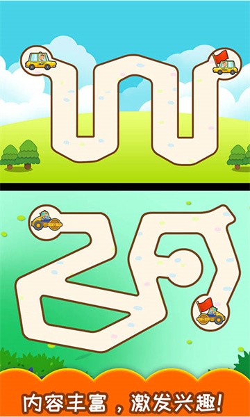 4、画面卡通欢快,制作精美,考验宝贝智力的时候到了,快来一起玩汽车迷宫吧