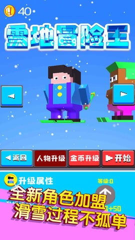 雪地冒险王是一款好玩的冒险竞技手游,游戏中场景冰天雪地的,来这里展开各种冒险乐趣,很多地图冒险乐趣玩法能够感受,生动鲜明的角色玩法在这,使用各种道具资源来这里感受不错的乐趣,上手游戏轻松简单,快来这里试试吧!