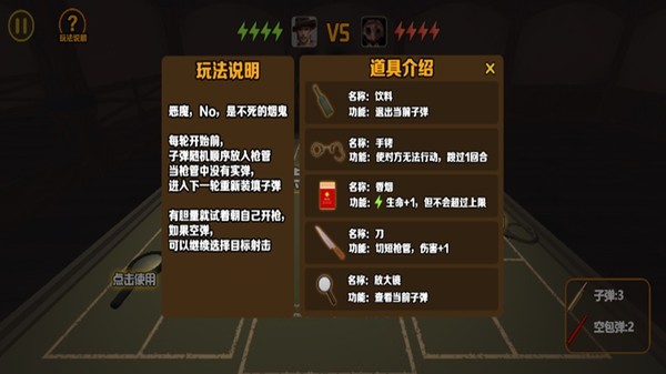 我与恶魔的对局是一款十分恐怖的冒险闯关游戏,玩家需要充分开发自己的智慧来完成轮盘调整,并躲避恶魔的进攻,获取最终的游戏胜利,整个游戏充斥着恐怖黑暗的氛围,玩家更要小心谨慎的寻找逃离的线索,一旦被恶魔的手枪击中,就只有重新挑战。