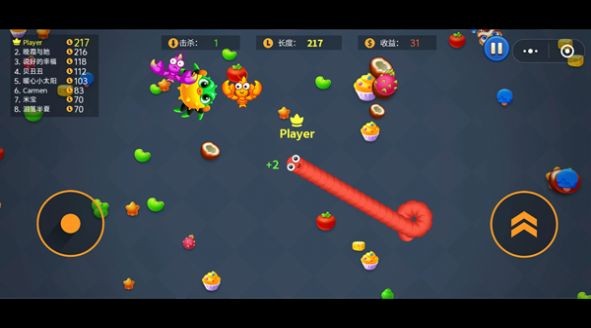 3、收集独特的果实来增长体长,并解锁特殊技能和能力以帮助玩家取得胜利.