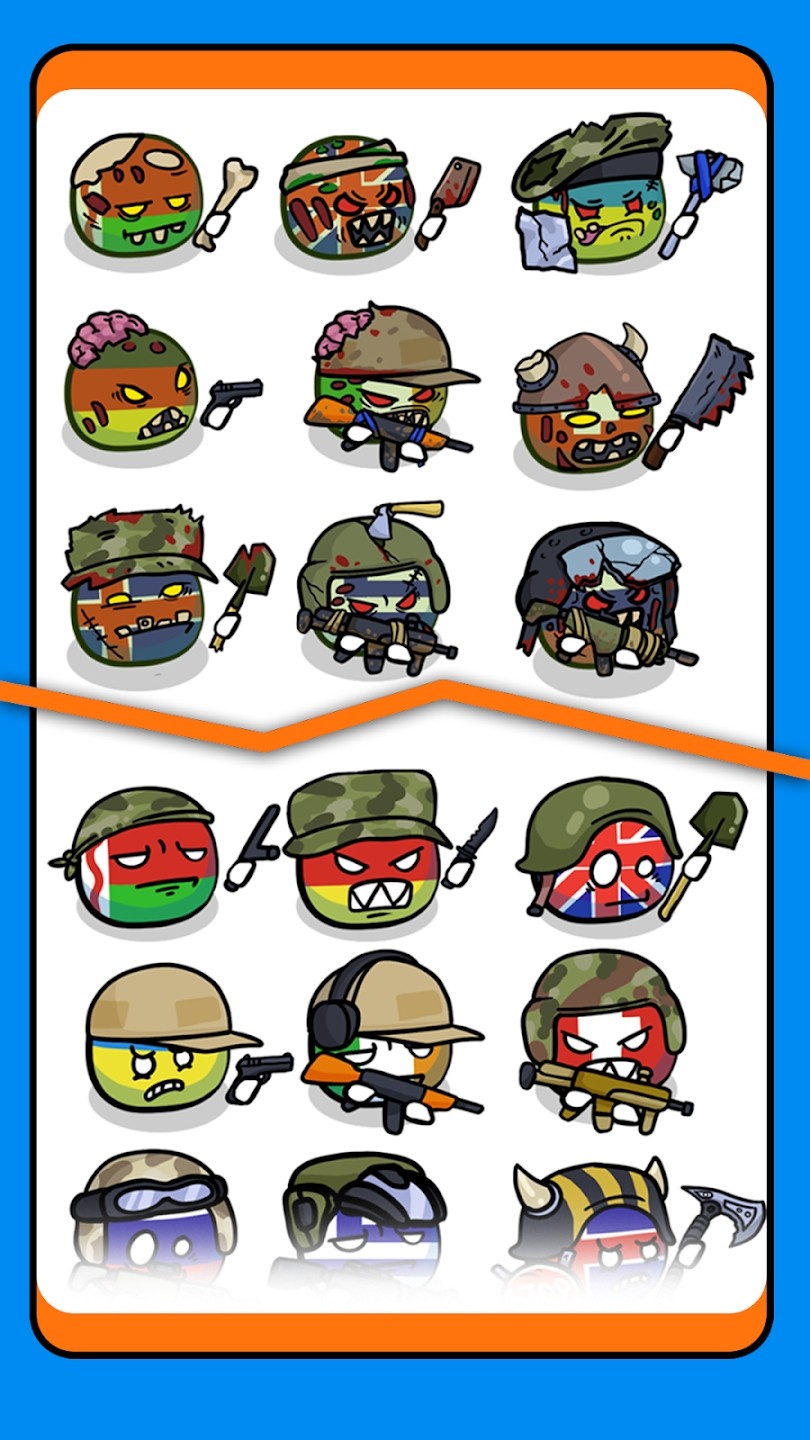 1、合并与征服:结合国家球来增强你的力量并克服僵尸挑战。