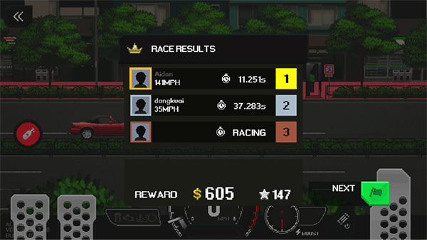 1、在游戏主页,可以选择给车辆改装,换色,购买新车等等,点击race即可开始赛车