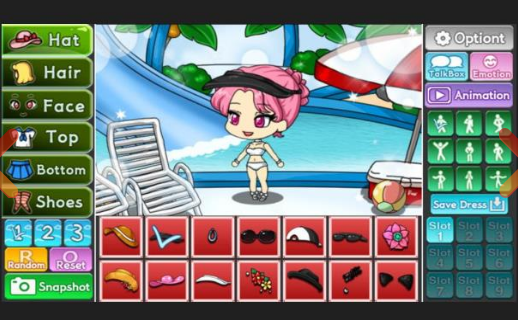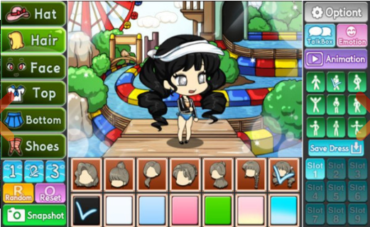 水上公园漂亮的女孩,用各种头发,服装和配饰制作自己的新鲜美少女。