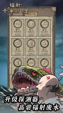 辐射干净又卫生是一款趣味养成模拟游戏,来这里游戏剧情以核污染海洋为游戏剧情,通过探测海洋的核污染范围,来确定被污染的物种,通过改善或者升级科技控制污染,来这里尝试控制污染,解锁探测器上面更多功能,有兴趣的用户快来这里试试吧!