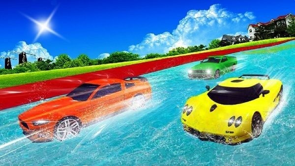 在水上滑梯汽车特技赛车手游戏中,体验刺激的水上赛车竞速,驾驶赛车飞速驰骋。