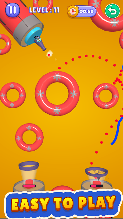 3、调整角度和力度,精确瞄准飘动中的彩色圆圈泡泡进行射击。