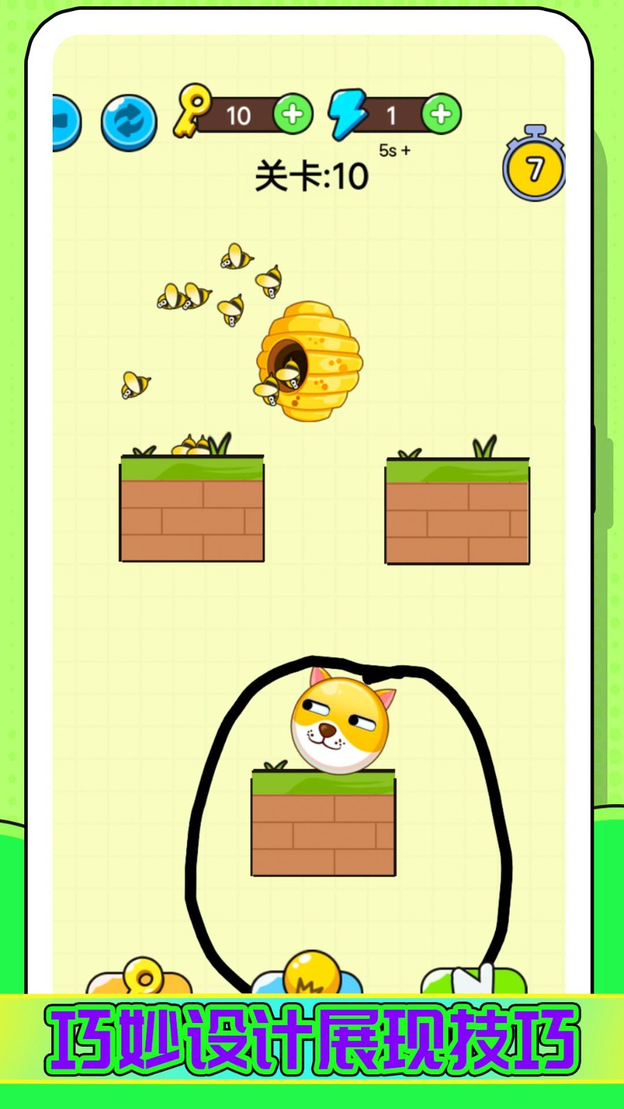 叫我画线大神是一款非常好玩的画线闯关游戏,游戏里面玩家需要通过画线的方式来保护狗头不被蜜蜂攻击,非常考验玩家的思维和动手能力,还有丰富的关卡挑战等你体验,每个关卡都有不同的挑战内容和难度,让你可以在这里玩得过瘾,喜欢的小伙伴快来下载吧。