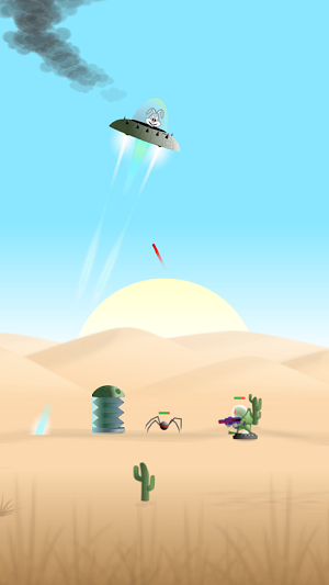 飞碟外星战争是一款画面风格非常简单的冒险闯关游戏,玩家作为一名战士和外星人进行战斗,躲避各种外星武器的进攻,最后将外星飞船打下来,无限趣味战斗对决可以体验,游戏很考验玩家的操作能力和战术思维,整体对决还是挺不错的,快来试试吧!