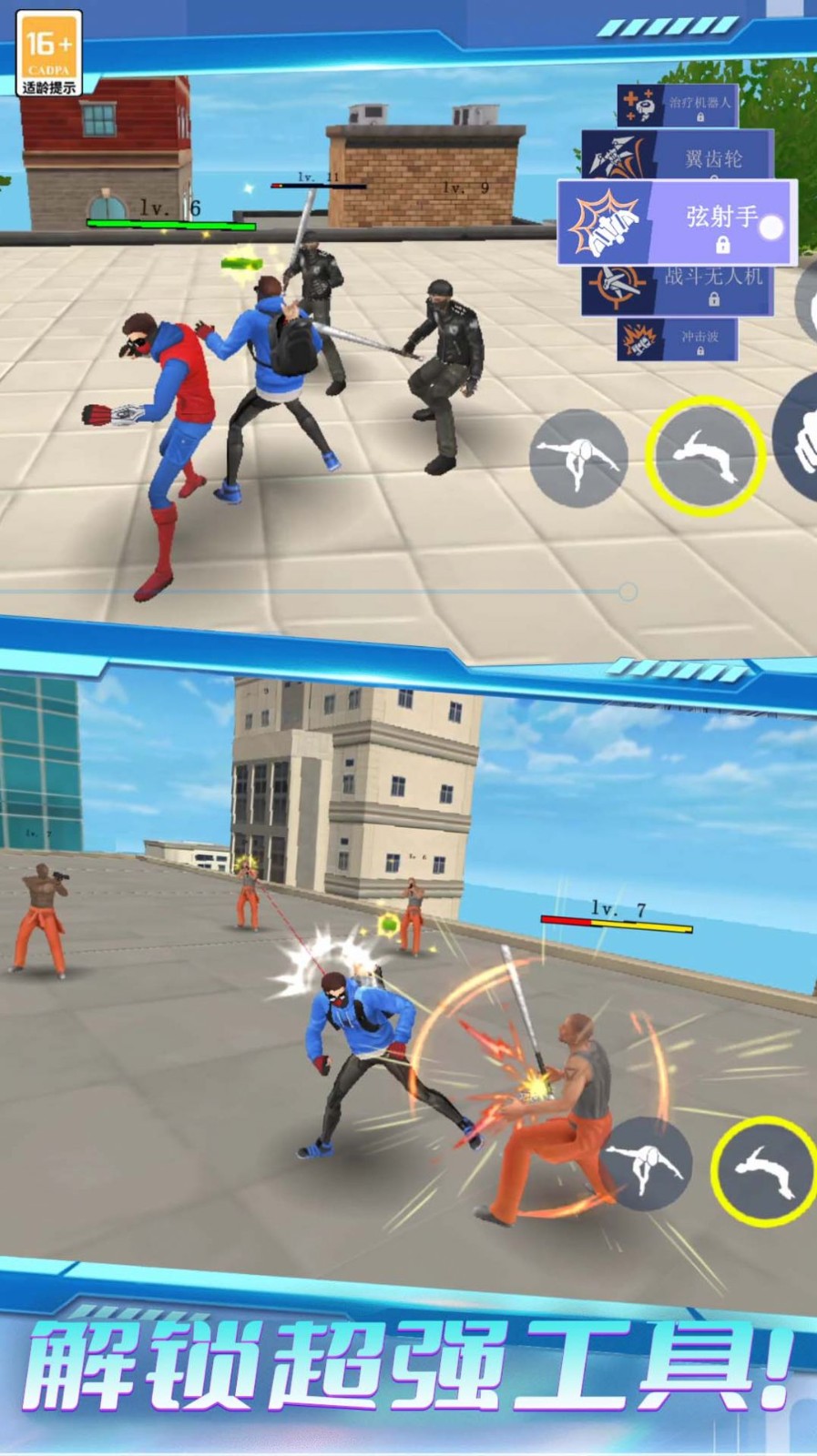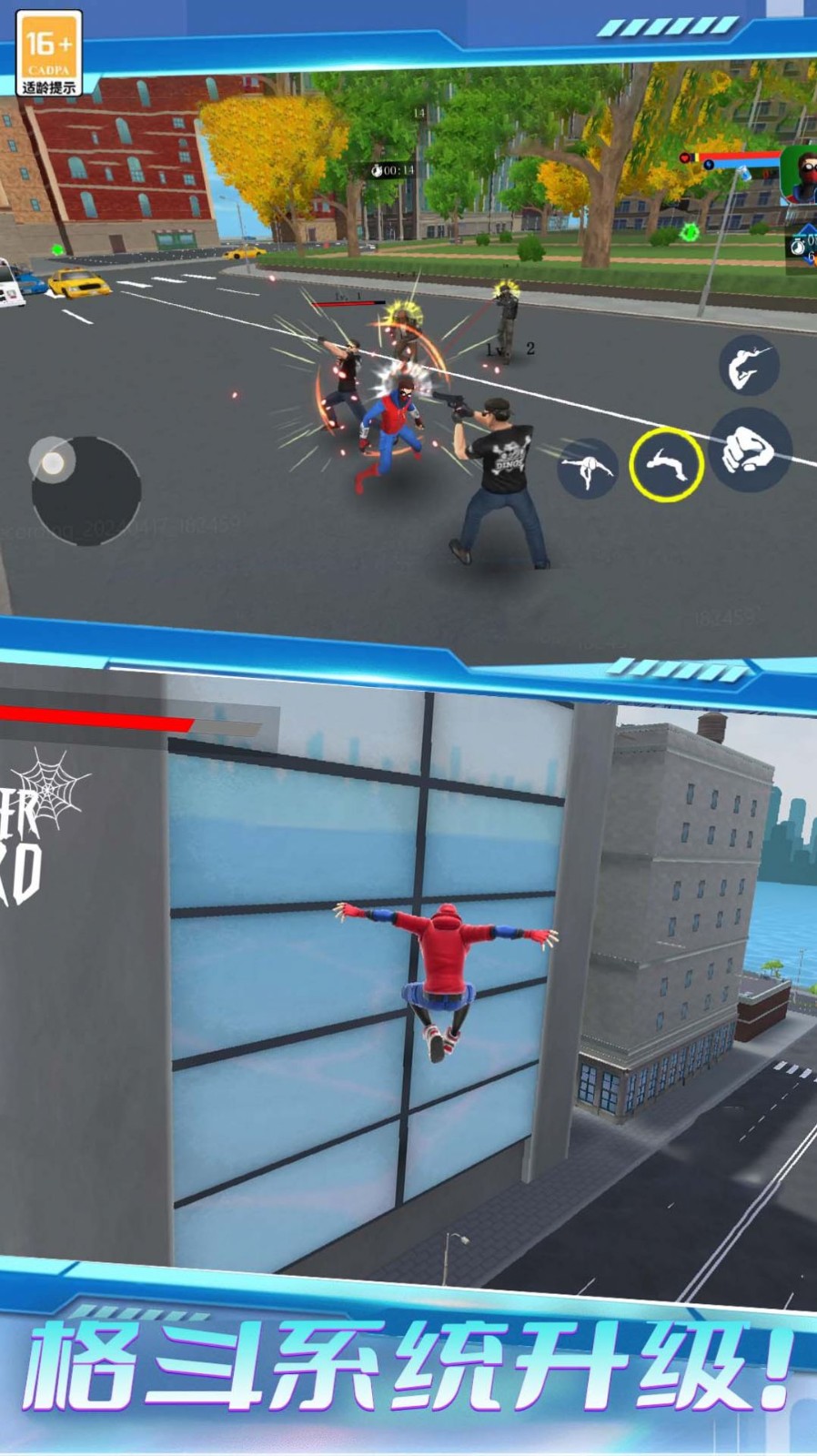2、跟随蜘蛛侠一起经历各种冒险和挑战,不断升级角色变强。