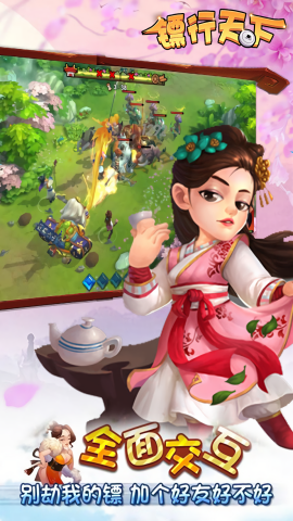 2、以押镖为主要玩法,体验江湖的恩怨情仇,努力提升你的实力,才能让自己的花红不被劫;