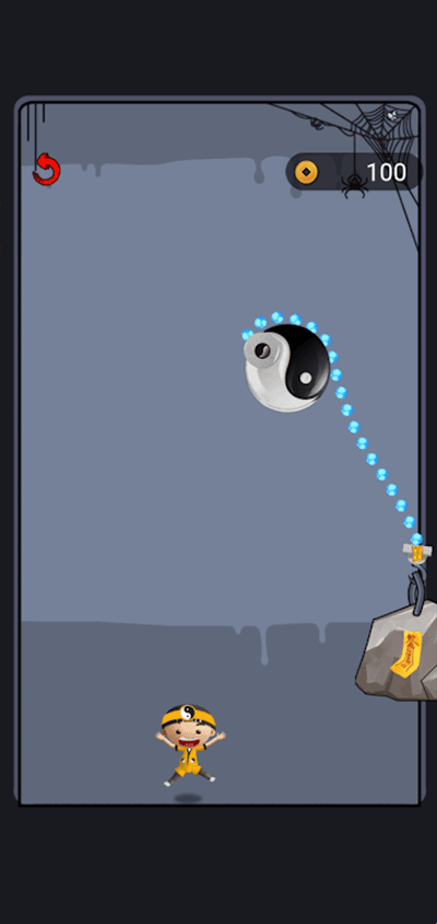 1、我们手持八卦看准时机向山上的石头发起攻击,看看你能在石头上钉多久吧!