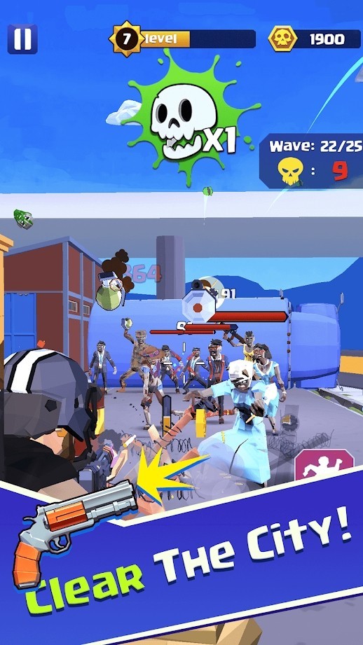 3、大量丧尸敌人出现,人类感到很恐慌,作为正义警察的你将要挺身而出,拿起武器进行射击。