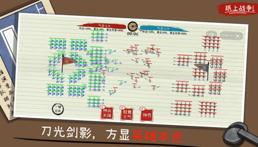4、在火柴人纸上战争这里化身指挥官打仗,策略性设计玩法,随时体验,更多玩法更休闲。