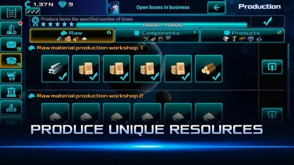 5、在不同的方向开展业务,采矿,食品生产,奢侈品供应等,升级您的业务并创建您的太空业务帝国。