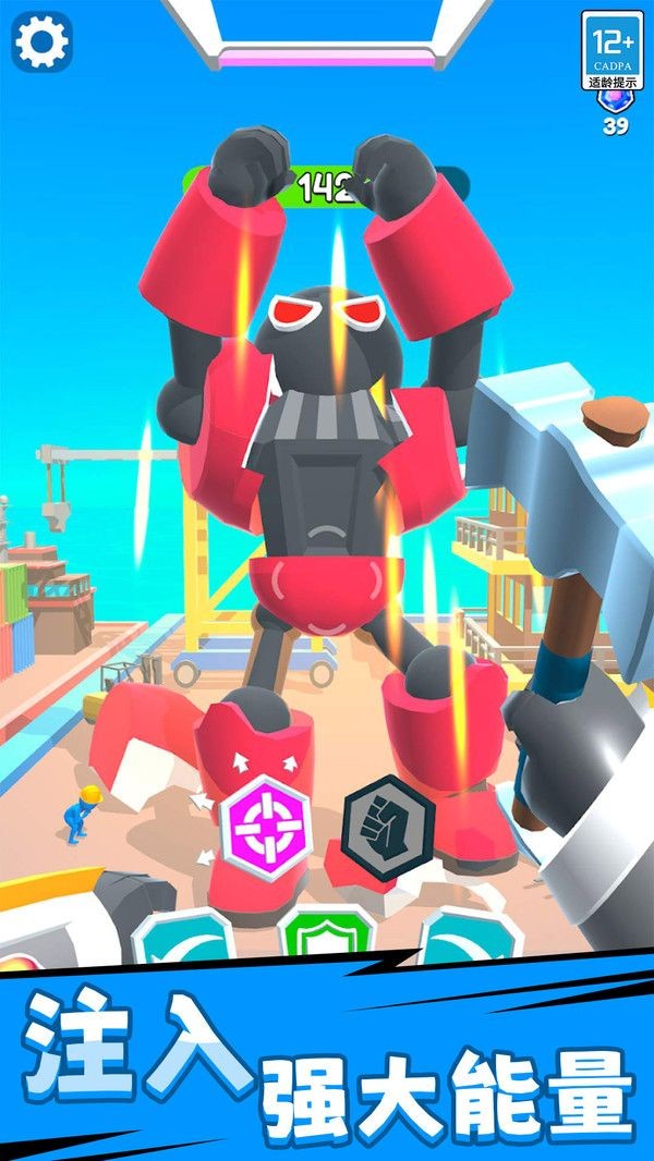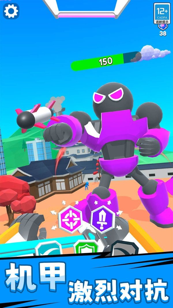 2、快节奏的对抗过程,不断的升级你的机甲英雄,助你去杀敌。