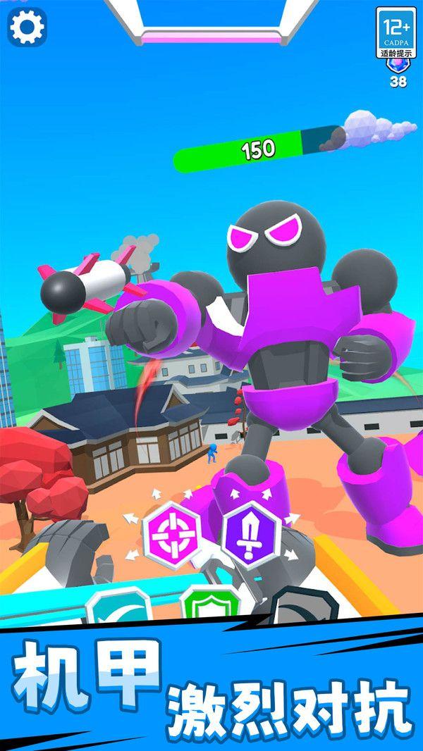 1、强势作战一起交锋,激烈的冲突,灵活的操控机甲去乱斗。