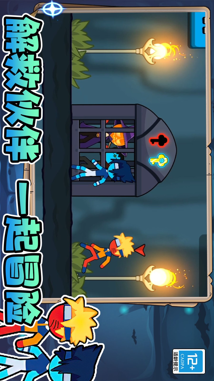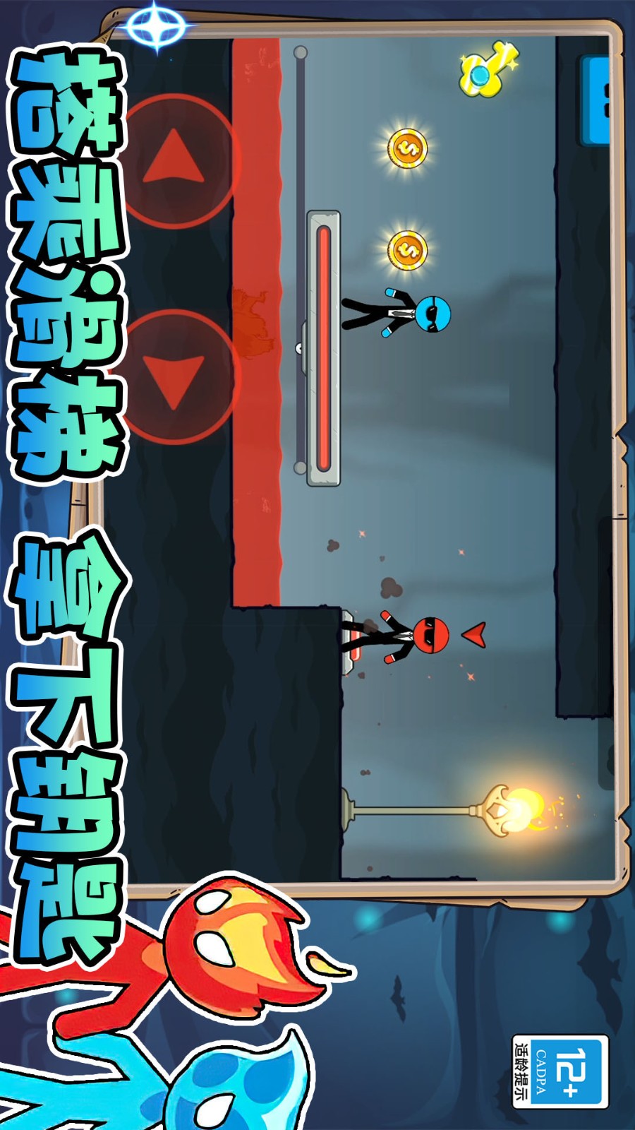 4、采用了经典熟悉的火柴人主题,在这里控制红蓝火柴人行动起来。