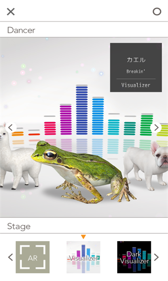 用户可以择卡通形象和背景图片,播放手机中的歌曲,设置的羊驼等有趣的动物就根据播放的歌曲跳舞。