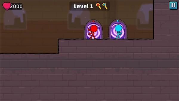 3、玩家在游戏里面需要帮助红色和蓝色的两个小人,