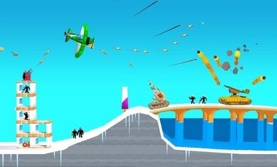 2、升级你的飞机和大炮,加入到战斗中之后,你就可以摧毁敌军的建筑物。