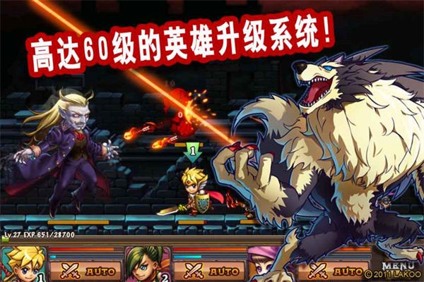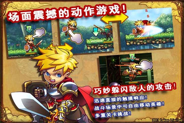 1、场面震撼的动作游戏;巧妙躲闪敌人的攻击;迅速直接的触摸响应;战斗场景中可以自由移动操纵勇者