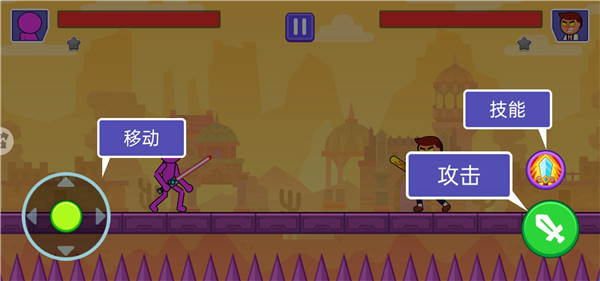 3、利用技能和攻击键,控制角色移动,击败对手,
