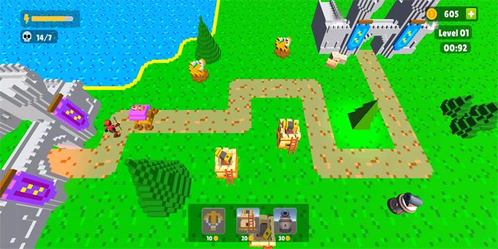 城堡入侵者(castle invaders)是一款根据塔防对战玩法打造的游戏,整体画面采用沙盒像素风格打造,玩家需要保护好你的城堡不受到伤害,在沿路上设置各种塔防工事,游戏中不断的升级你的塔防,策略安排好塔防的位置,最大程度发挥塔防的威力,喜欢塔防的玩家快来挑战吧!