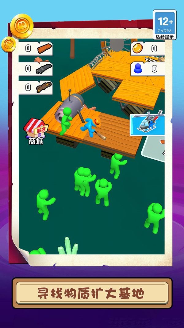 1、你要去收集更多的材料,扩张自己的生存基地,对抗僵尸。
