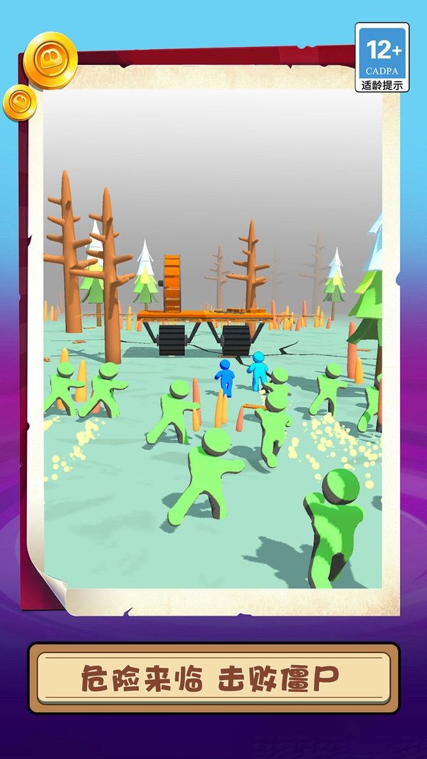 2、卡通式的作战画风,到处都是僵尸,你要武装好自己再开启战斗。