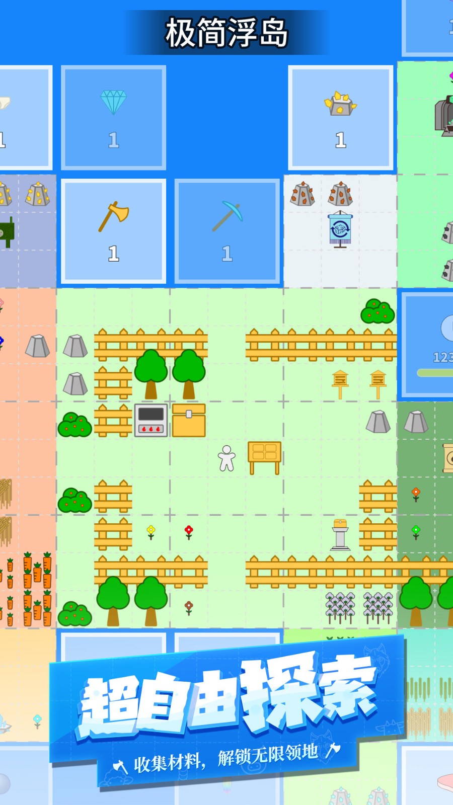 极简浮岛是一款荒岛求生冒险游戏,游戏中自由搭配各种物品道具,在这里沉浸式的冒险体验玩法,玩家管理好自己的家园,游戏中收集各种全新的材料资源,手中的各种物质能够搭建各种需要的物体,很自由的探索乐趣,在这里没有边界设定,想怎么玩就怎么玩,快来试试吧!