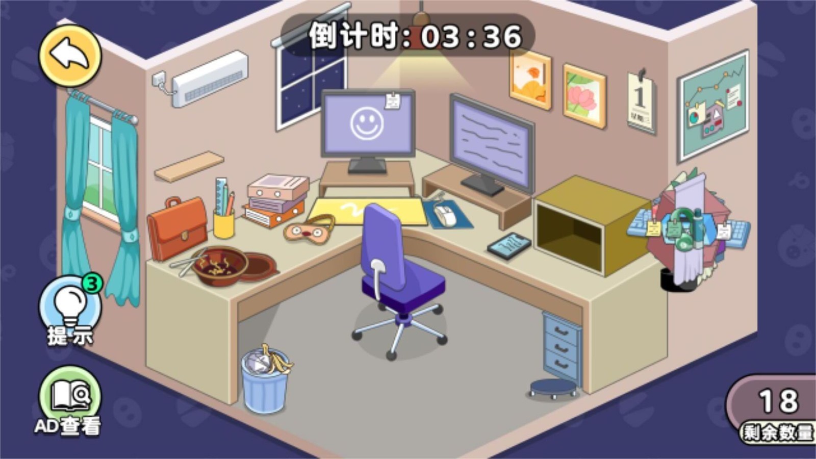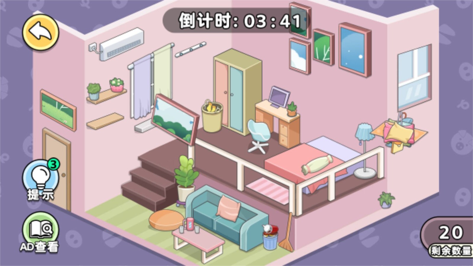 杂乱的房间:每个关卡的房间都是杂乱不堪,需要通过整理和摆放物品,将房间变得井井有条。