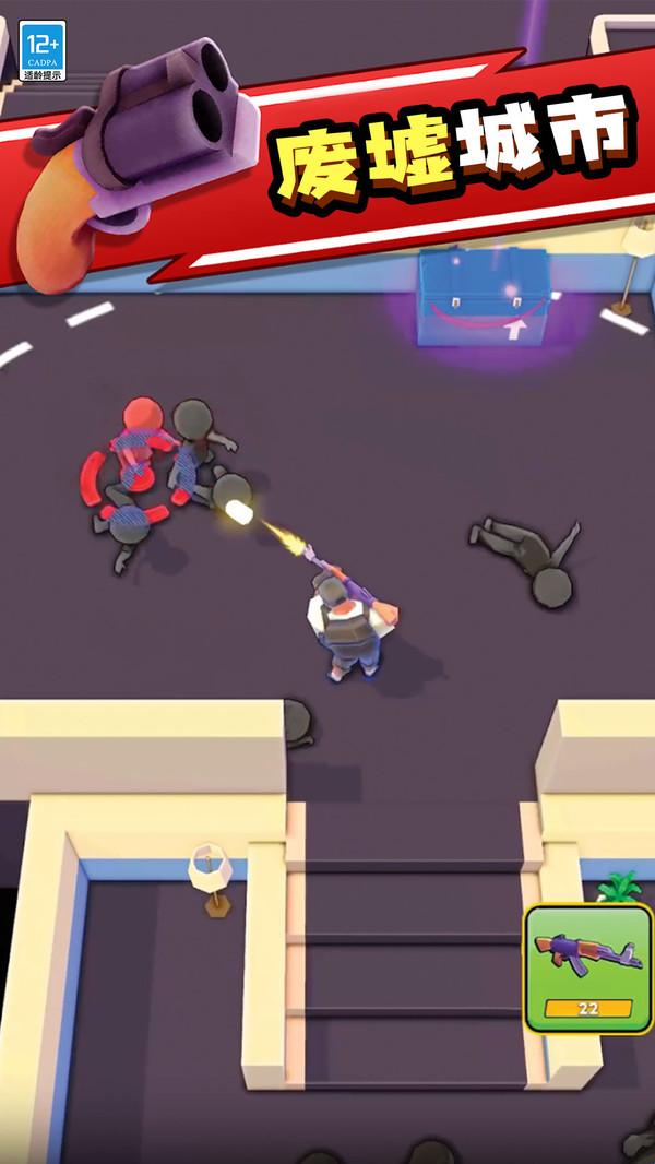 2.射击:游戏采用第一人称、固定视角射击模式。玩家可以控制自己的角色射击、攻击、消灭僵尸,保护自己和营地。