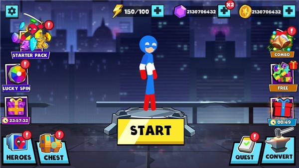 超级火柴人英雄战斗的游戏设定中,玩家不仅联机召唤队友一同战斗,还可以查看排行榜中的其他玩家并进行挑战,多个英雄人物可以选择,超多炫酷技能随时使用,游戏全程设计采用卡通动漫的设计风格,丰富精彩的剧情贯穿始终,玩家可以在游戏中感受各个不同角色的魅力,展现自己强大的控制技巧,不仅玩法新奇有趣,而且还可以为你提供各种精美的道具,在竞技中提升自己的技能,感受战斗的激烈与热血。