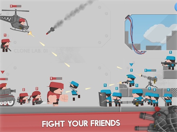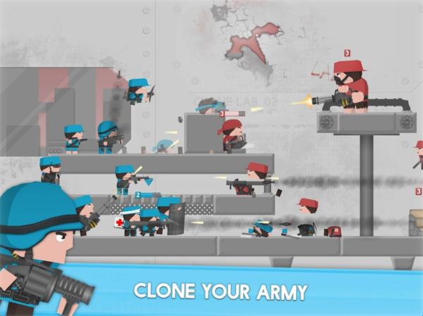 克隆军团拥有极具策略性的对攻塔防玩法,深受塔防类游戏玩家的喜爱,各类兵种丰富多样,玩家可以自由选择并组建自己的军队,通过合适的策略和兵种间的相克进行布局,红蓝军互相对抗中还可以通过特殊方法来不断克隆你的军队,并完成一个又一个极具挑战性的任务,各种不同的游戏模式可以任由玩家挑选,同时玩家也要注意升级自己军队的战斗力,这会是制胜的关键。