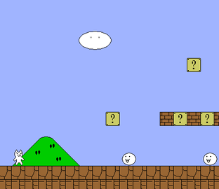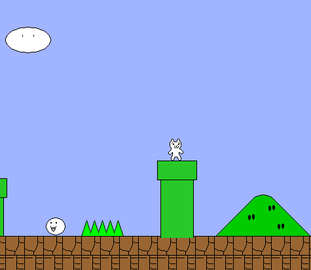 超级玛丽猫的风格很简单,游戏的玩法很变态,玩家需要谨慎前进,探查出每一个机关和陷阱。