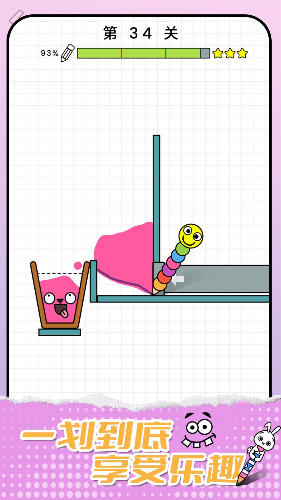 2.在屏幕上画线,依据不同的障碍物,引导水流进被子中,来装满杯子。