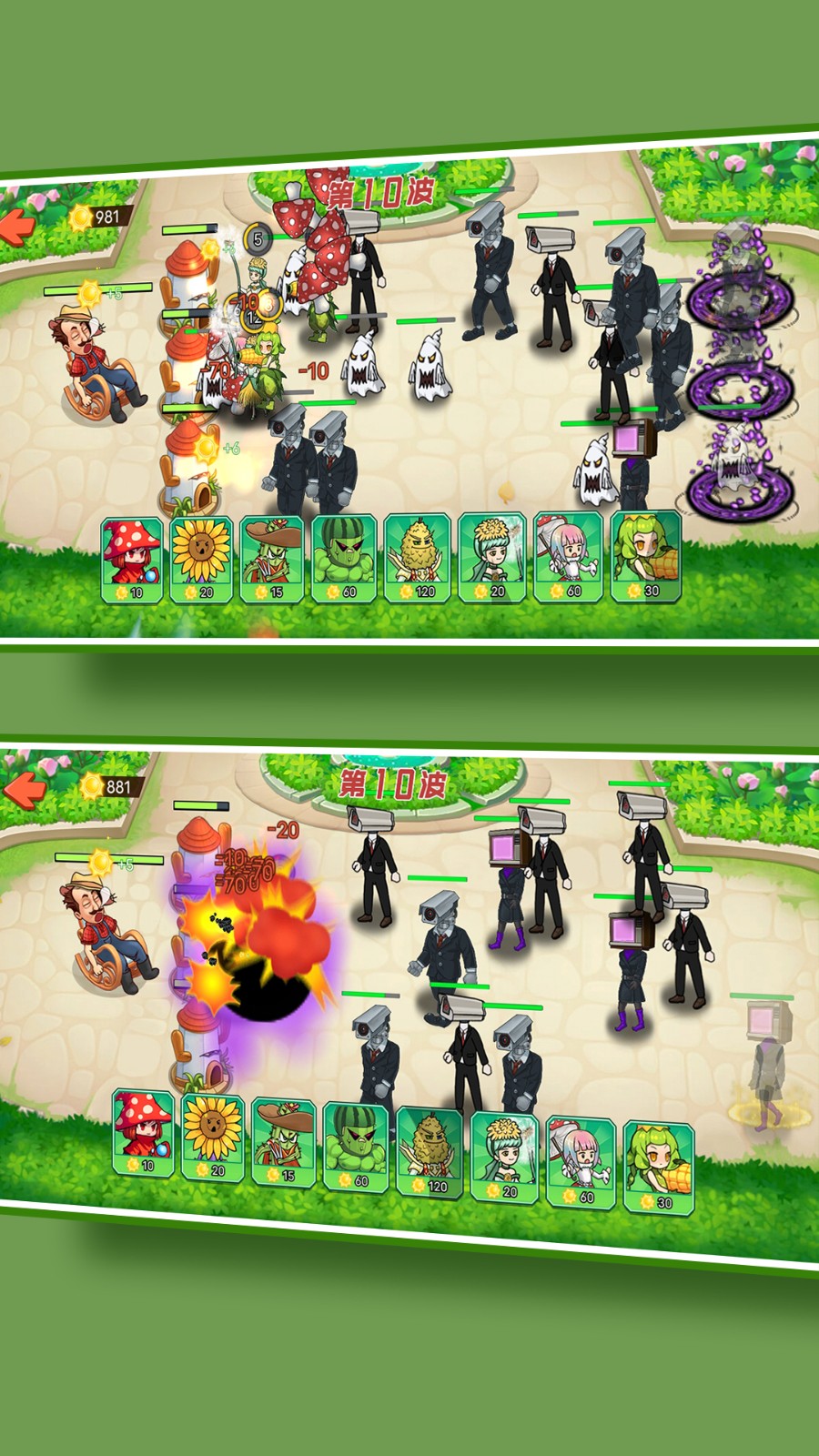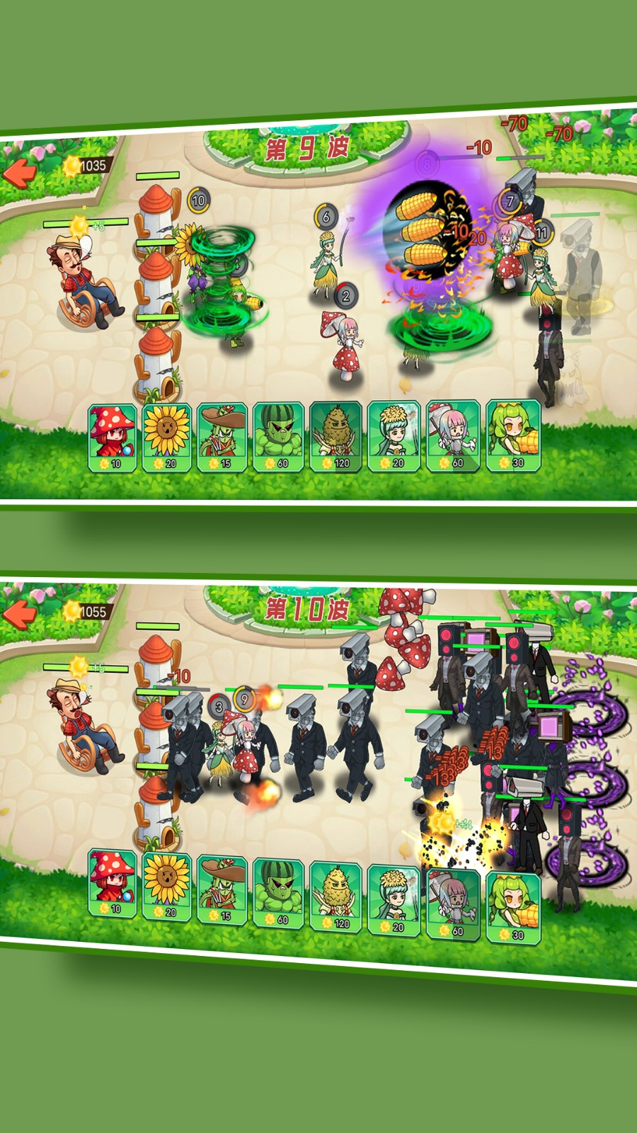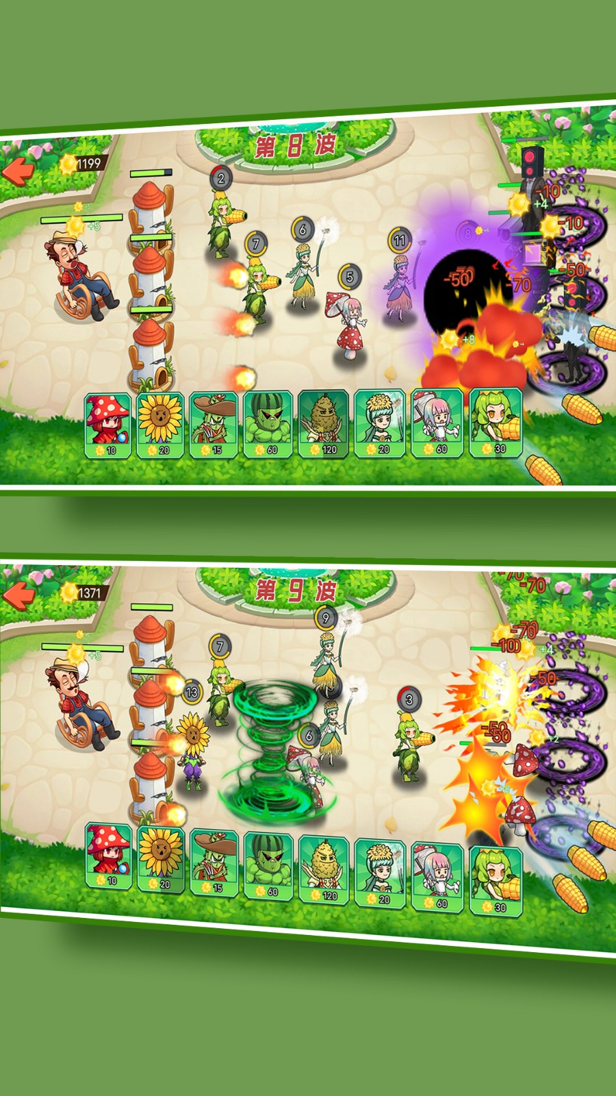 2、大量不同的兵种,化身为植物,要迎接僵尸敌人的来袭。