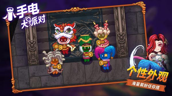 小手电大派对游戏是一款像素风格的地牢冒险游戏,游戏中阻止敌人进入你的区域,游戏玩法有进攻和守卫,玩法类似第五人格,击杀敌人获得不错的资源,传说中很多密室中有很多宝藏,玩家寻找道具获得七个宝石,守护者要阻止敌人获得宝石,玩法变化多端,玩家时刻小心谨慎即可!
